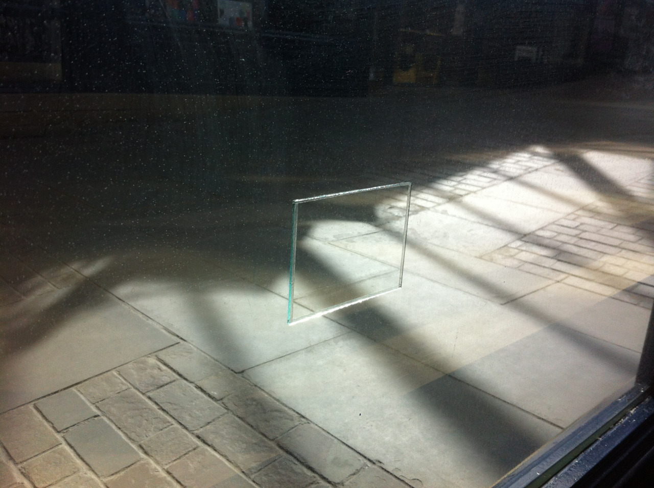 Having remained elusive so far regarding the exact details of her contribution to the upcoming Weisslich concert, instead of providing potential Weisslich concert-goers with an account of what to expect from Eleanor on the upcoming concert, I would like to finish this short feature by offering a brief speculation into one direction that I think this work along with her most recent work in the visual field may point towards: a vanishing point. With Itself from 2015 consists of only a tiny glass pane placed overtop a larger window pane. It is an unimposing piece that when, and if, noticed stirs up a perceptual double-take. Seeming to me to be a development of the miniature placards in Private Sculpture Series, With Itself fits along a trajectory of work situated at physical and perceptual fringes. This is work that could be read as being part of a larger process of becoming barely-present or nearly-absent. Like worn traces of a shadow long absent, the artist and their material are disappearing.